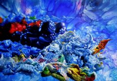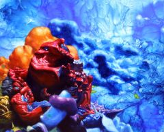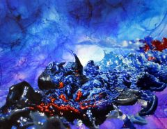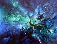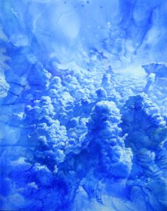 Autonomous Painting series is a works that I concretely pursue certain traces of flowed and dripped paint. The autonomous images could be real landscapes(looking down from airplane), or perhaps mystic spaces. Accidental and momentary idea of association is settled in my brain solidly. Blue background could be originated from my contemporary nomadic experiences that I have been wandering through airways a lot, or nostalgia of my childhood in seaside. Blue is abyss, sky, universe, inside or outside to me. The very fragile and vulnerable mystic images and constantly changing momentary images are placing on top of the backgrounds. I want to provide familiar or unfamiliar images to give a clear or ambiguous inspiration by strong catch my transient inspiration and visualizations of it. This whole process makes my works to be what they have to be and this is the core of the Autonomous paintings.